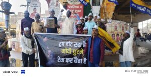 सोनभद्र। भारत-अमेरिका ट्रेड डील के विरोध में आम आदमी पार्टी (AAP) के कार्यकर्ताओं ने सोनभद्र में विरोध प्रदर्शन किया। प्रदर्शन के दौरान कार्यकर्ताओं ने केंद्र सरकार
