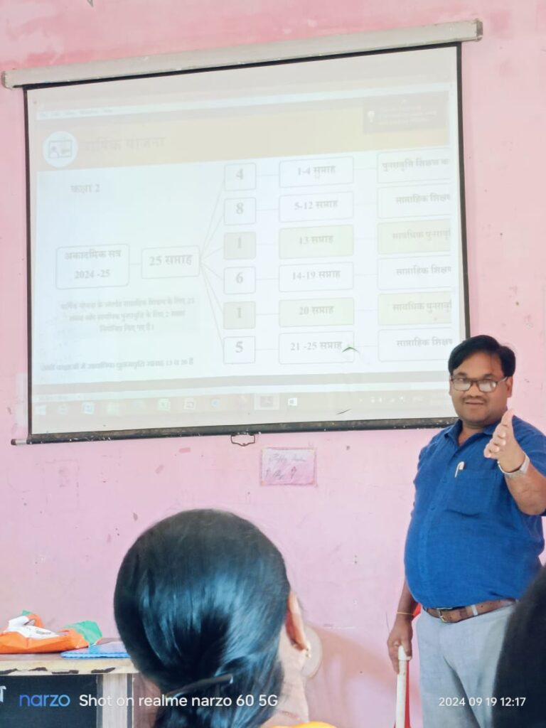 एआरपी दीनबन्धु त्रिपाठी ने बताया कि पूरे वर्ष का कार्यक्रम निर्धारित किया गया है,जिसमें वर्ष भर के लिये प्रत्येक कक्षाओं में शिक्षण उद्देश्य निर्धारित किये गये हैं,जिसको प्राप्त करने के लिए वार्षिक प्लान, साप्ताहिक प्लान व दैनिक प्लान बनाकर शिक्षकों को प्रशिक्षित किया गया है। पूरे प्रदेश में एक समयसारिणी के अनुसार कार्य होना है। सबसे अच्छी बात है कि प्रत्येक कक्षाओं में.भाषा व गणित के तीन तीन वादन चलेंगे, जिसे जीआरआर सिस्टम व फोर ब्लाक माडल से संचालित करके ,शिक्षणयोजना पढाने के बाद ,बच्चों से अभ्यास पुस्तिका पर कार्य व तृतीय वादन में खेल गतिविधि कराकर उस अवधारणा को विकसित किया जायेगा।शिक्षकों ने बताया कि बहुत ही सुन्दर ढंग से प्रशिक्षण दिया गया है,और यह एक अच्छा सिस्टम है ,जिससे बच्चों का भाषा व गणित में अपेक्षित परिणाम प्राप्त होंगे। प्रशिक्षण देने वाले में एआरपी अविनाश शुक्ला, अखिलेश सिंह, दीनबन्धु त्रिपाठी ,मिथिलेश द्विवेदी व धर्मराज सिंह रहे।