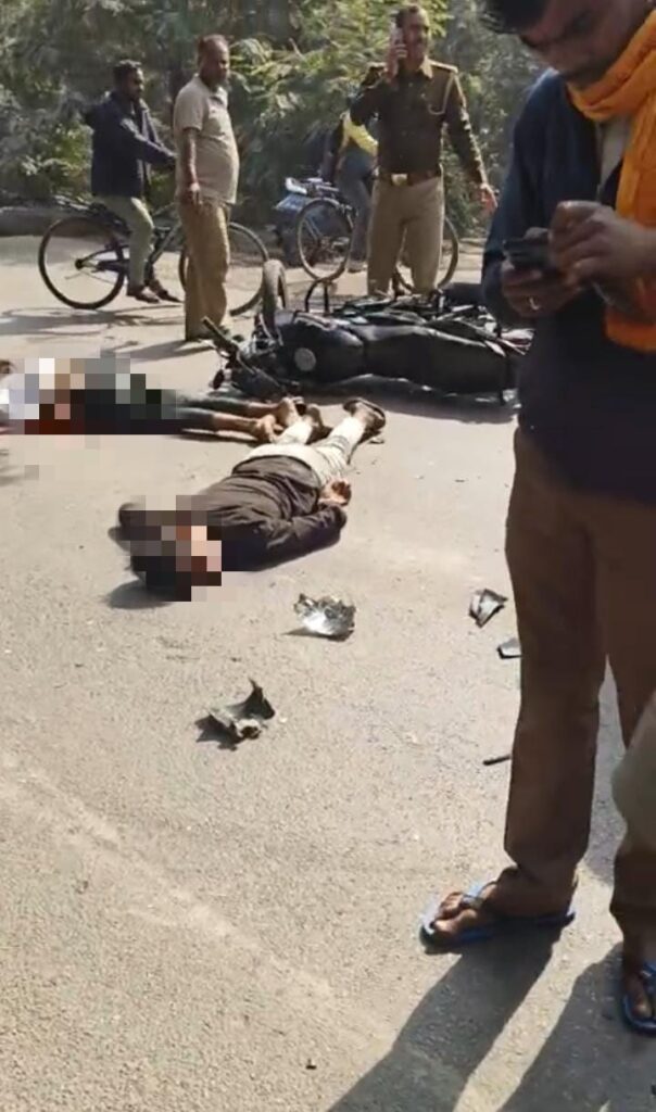 (अनपरा) सोनभद्र – स्थानीय थाना क्षेत्र अंतर्गत वाराणसी-शक्तिनगर मुख्य मार्ग के काशी मोड़ दो नंबर गेट समीप दोपहर बारह बजे करीब दो बाईकों की आपसी जोरदार टक्कर के दौरान दोनों बाइक पर सवार चार लोग घायल हो गए ! आस पास के मौजूद लोगों द्वारा घटना मामले की सूचना पुलिस को दी गई सूचना पर घटना स्थल पहुंचे थाना प्रभारी राजेश सिंह और रेनुसागर चौकी प्रभारी संजय सिंह द्वारा लोगों की मदद से चारों घायल युवकों को उपचार हेतु संयुक्त चिकित्सालय डिबुलगंज ले जाया गया जहां डॉक्टर द्वारा उपचार के दौरान घायलों को बेहतर उपचार हेतु रेफर कर दिया गया ! चिकित्सालय पहुंचे घायलो के परिवारजनों द्वारा पल्सर बाइक सवार घायल रोहित बैस पुत्र मुन्ना बैस 18 वर्ष और तरूण पुत्र नरेश बैस 19 वर्ष निवासी पूर्वी परासी को मध्य प्रदेश स्थित अस्पताल ले जाया गया जहां उपचार के दौरान दोनो ही सुरक्षित बताया जा रहा है और पैशन प्रो बाइक सवार गंभीर रूप से घायल राजेश गुप्ता उर्फ राज पुत्र स्व0 रविचन्द्र गुप्ता 30 वर्ष को वाराणसी और घायल सुरेन्द्र सोनी पुत्र दीनानाथ सोनी 33 वर्ष दो नंबर गेट समीप लाल मैदान निवासी को ज़िला अस्पताल के लिए रेफर कर दिया गया ! गंभीर रूप से घायल राजेश गुप्ता उर्फ राज पुत्र स्व0 रविचन्द्र गुप्ता 30 वर्ष की मौत हो गई और सुरेन्द्र सोनी पुत्र दीनानाथ सोनी 33 वर्ष उपचार के दौरान सुरक्षित बताया जा रहा है !