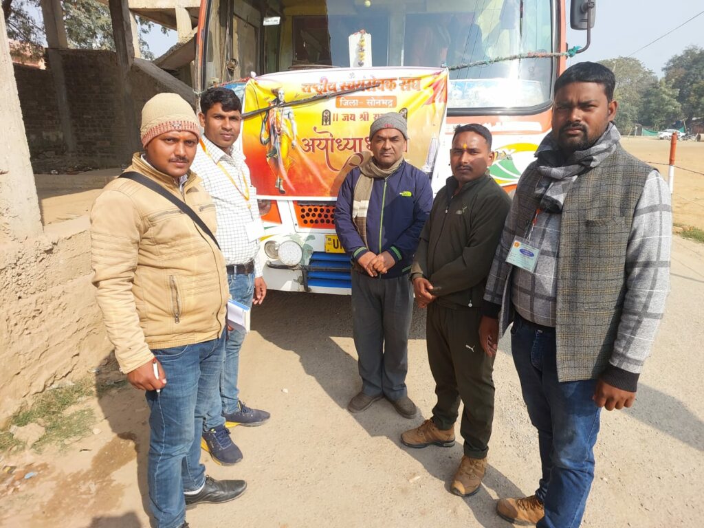 रामगढ सोनभद्र चतरा खण्ड से रास्ट्रीय स्वयंसेवक संघ जिला सोनभद्र के मार्गदर्शन मे चतरा खण्ड से अयोध्या प्रभु श्रीराम जी के दर्शन करने के लिए एक टीम रवाना हुए राष्ट्रीय स्वयं संघ की टीम बहुत ही हर्षोल्लास के साथ पहली टीम हुई रवाना जिसमे मुख्य रुप से साथ मे जिला प्रचारक देवदत्त, सह जिला कार्यवाह रामलगन, चतरा खण्ड के खण्ड कार्यवाह लालू प्रसाद यादव, जिला शरीरिक प्रमुख राकेश, नगवां खण्ड कार्यवाह रवि, लवकुश पाठक सुशील पांडेय, राकेश चंद्रवंशी, रोशन, अंकित देव,तरुण आदि सभी टीमें रवाना हुई