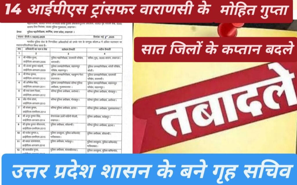 सोनभद्र/उत्तर प्रदेश शासन ने यूपी में आईपीएस अधिकारियों का बड़ा फेरबदल किया है 14 आईपीएस के किए गए इधर से उधर सात जिलों के पुलिस अधीक्षक बदले
