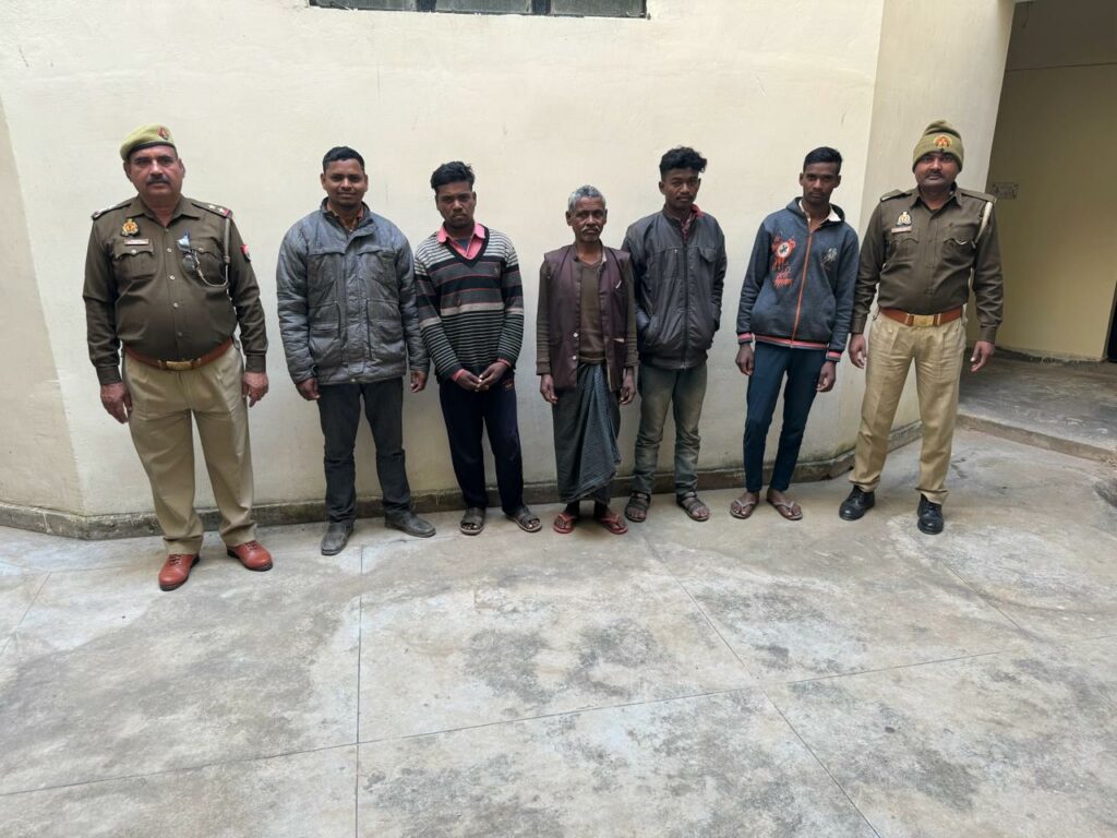 सोनभद्र- पुलिस अधीक्षक द्वारा अपराध एवं अपराधियों के विरुद्ध चलाये जा रहे अभियान के क्रम मे अपर पुलिस अधीक्षक आपरेशन व क्षेत्राधिकारी सदर संजीव कटियार के नेतृत्व में प्रभारी निरीक्षक सदानन्द राय रामपुर बरकोनिया के निर्देशन में उ0नि0 शिव कुमार पाण्डेय, हे0का0 मनोज कुमार सिंह,मनोज यादव थाना से प्रस्थान कर देखभाल क्षेत्र, संदिग्ध / वारण्टियों की चेकिंग में पिन्टू पुत्र रामचन्दर उम्र करीब 25 वर्ष, राममूरत पुत्र रामचन्दर उम्र करीब 22 वर्ष,रामचन्दर पुत्र रामधारी उम्र करीब 60 वर्ष निवासी ग्राम रामपुर थाना रामपुर बरकोनिया सोनभद्र, थाना माँची अभियुक्त बबलू पनिका पुत्र रामबचन उम्र करीब 31 वर्ष, श्यामलाल खरवार पुत्र रामचन्दर उम्र करीब 35 वर्ष निवासी ग्राम रामपुर थाना रामपुर बरकोनिया जनपद सोनभद्र को गिरफ्तार कर न्यायालय भेजा गया
