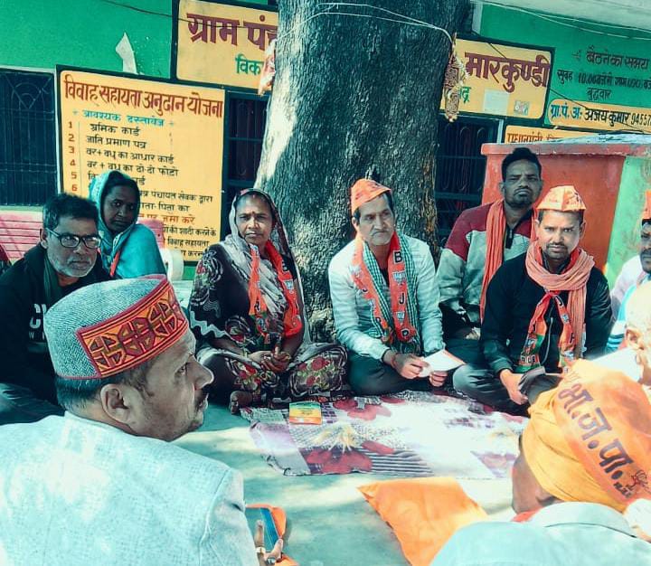 सोनभद्र- चोपन थाना क्षेत्र के अंतर्गत मारकुंडी ग्राम सभा में भारतीय जनता पार्टी की जगह-जगह पर बैठक संपन्न हुई मुख्य रूप से अनिल सिंह पूर्व जिला अध्यक्ष वर्तमान में जिला प्रभारी सुनील सिंह मंडल अध्यक्ष सत्यदेव पांडे परशुराम केसरी जिलाजीत यादव मीडिया प्रभारी भुआलशर्मा अहमद अली इत्यादि लोग बैठक में सम्मिलित हुए और इन सभी लोगों को अपने-अपने दायित्व के संबंध में जानकारी दी गई