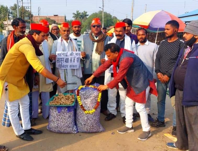 सोनभद्र – आज समाजवादी पार्टी कार्यकर्ताओं ने एकत्र होकर स्वर्ण जयंती चौक पर प्रदेश मे बढ़ती महगाई को लेकर प्रदर्शन किया और नारे लगाते हुवे जिम्मेदार भाजपा सरकार है, समाजवादी पार्टी के जिला सचिव प्रमोद यादव ने कहा की भाजपा सरकार केवल जनता पर महंगाई लाद कर जनता को महंगाई के मुह मे ढकेलना चाहती है जबकि यहि भाजपा के लोग जनता से वादा किया था कि महंगाई बेरोजगारी दूर किया जायेगा प्रमोद यादव ने कहा की आज लहसुन 400 के पार हो गया, अदरक,160 रुपये, खाद्य पदार्थ आटा चावल दाल महंगा, प्रमोद यादव ने कहा की आज पेट्रोल और डीजल के दामों मे वृद्धि, महंगा सिलेंडर है शिक्षा महंगा है केवल जनता का शोषण किया जा रहा है, राष्ट्रिय सचिव जेपी भारती ने कहा कि आज प्रदेश की जनता महंगाई, बेरोजगारी से परेशान हैं लेकिन यह सरकार केवल जनता को मंदिर मस्जिद में उलझा कर रखी है पूर्व नगर सचिव मनीष त्रिपाठी ने कहा कि लहसुन और अदरक व सब्जियों की मंहगाई के साथ साथ आटा, दाल चावल महंगा है और केंद्र की सरकार और प्रदेश की सरकार के बजट में 90 % जनता को गुमराह किया गया, अंगद मौर्या, लल्लू भारती, राजकुमार सोनकर, रामचन्द्र सोनकर, जुनैद अंसारी, छोटू सोनकर, गोपाल गुप्ता, राजमनी खरवार