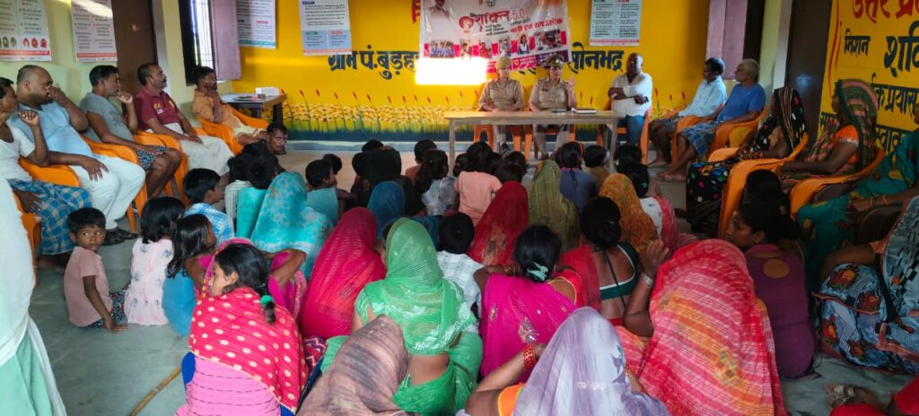सोनभद्र। 28.09.2025 को माननीय मुख्यमंत्री द्वारा चलाए जा रहे मिशन शक्ति फेज 5.0 के तहत ग्राम बुढ़हर खुर्द में महिलाओं के लिए जन-चौपाल का आयोजन किया गया। इस अवसर पर महिलाओं को सरकार द्वारा चलाई जा रही विभिन्न योजनाओं और उनके सुरक्षा अधिकारों के बारे में जानकारी दी गई। साथ ही महिलाओं को सुरक्षा एवं शिकायत हेतु टोल-फ्री नंबरों के बारे में भी विस्तारपूर्वक बताया गया। महिला सुरक्षा हेतु: 1090, 112, 1098, 1076, साइबर फ्रॉड से संबंधित शिकायत हेतु: 1930 महिला थाना रॉबर्ट्सगंज ने बताया कि इस पहल का उद्देश्य महिलाओं को उनके अधिकारों और सुरक्षा से अवगत कराना तथा उन्हें सरकारी योजनाओं से जोड़ना है।