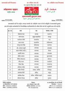 सोनभद्र। लोकसभा चुनाव की तैयारियों को ध्यान में रखते हुए समाजवादी पार्टी ने अपने युवा संगठनों में पदाधिकारियों की नियुक्ति प्रारंभ कर दी है। गुरुवार को समाजवादी युवजन सभा की राष्ट्रीय कार्यकारिणी का गठन किया गया है।