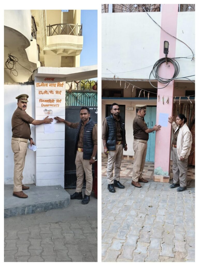 सोनभद्र। अनपरा थाना में पंजीकृत मुकदमा अपराध संख्या 149/25, धारा 318(4), 338, 336(3), 340(2), 316(2) बीएनएस से संबंधित श्याम कुमारी पत्नी भागीरथी मौर्य निवासी मुँहकोचवा राजपुर थाना कोतवाली देहात जनपद मिर्जापुर तथा कृष्ण प्रकाश पुत्र भोलानाथ निवासी कतरन डीहवा राजपुर थाना कोतवाली देहात जनपद मिर्जापुर के विरुद्ध न्यायालय से प्राप्त आदेश के अनुपालन में धारा 84 बीएनएसएस के तहत उनके घर पर नियमानुसार कार्रवाई की गई। इस दौरान विधिवत मुनादी कराई गई। कार्रवाई उप निरीक्षक संतोष कुमार सिंह द्वारा हमराह आरक्षी पवन कुमार के साथ संपन्न की गई।