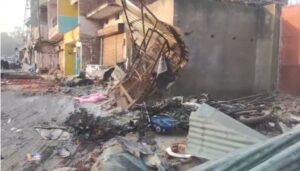सोनभद्र। चोपन थाना क्षेत्र में वाराणसी-शक्तिनगर स्टेट हाईवे स्थित गुरुद्वारा स्कूल के समीप शुक्रवार भोर एक तेज रफ्तार राखड़ लदी ट्रेलर ने जमकर कहर बरसाया। तेज आवाज और धूल का गुबार उठते ही आसपास के लोग घरों से बाहर निकल आए। अनियंत्रित ट्रेलर ने सड़क किनारे कई मकानों को क्षतिग्रस्त करते हुए चार बाइक और एक कार को भी रौंद डाला।