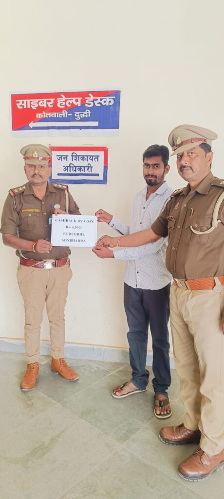 सोनभद्र (दुद्धी) दुद्धी थाना की साइबर टीम ने त्वरित कार्रवाई करते हुए साइबर ठगी/त्रुटिवश ट्रांसफर की गई ₹6,500 की धनराशि आवेदक को सफलतापूर्वक वापस करा दी। पुलिस अधीक्षक अभिषेक वर्मा के निर्देशन में साइबर अपराधियों के विरुद्ध चलाए जा रहे विशेष अभियान के क्रम में, अपर पुलिस अधीक्षक के दिशा-निर्देशन एवं क्षेत्राधिकारी दुद्धी के कुशल नेतृत्व में प्रभारी निरीक्षक थाना दुद्धी व स्थानीय साइबर टीम ने तत्परता दिखाते हुए यह कार्रवाई की। प्राप्त जानकारी के अनुसार आवेदक धीरज कुमार पुत्र आत्मा प्रसाद निवासी ग्राम धनौरा थाना दुद्धी की ₹6,500 की धनराशि त्रुटिवश किसी अज्ञात व्यक्ति के खाते में स्थानांतरित हो गई थी। इस संबंध में आवेदक द्वारा एनसीआरपी पोर्टल पर शिकायत दर्ज कराई गई। प्रकरण में पुलिस टीम ने आवश्यक साक्ष्य संकलित कर संबंधित बैंकों से त्वरित पत्राचार किया तथा लाभार्थी खाताधारक से समन्वय स्थापित कर विधिक प्रक्रिया पूर्ण कराई। परिणामस्वरूप ₹6,500 (छह हजार पांच सौ रुपये) की पूरी धनराशि सफलतापूर्वक आवेदक के मूल बैंक खाते में वापस करा दी गई। धनराशि वापस कराने वाली टीम प्रभारी निरीक्षक धर्मेन्द्र कुमार सिंह थाना दुद्धी, कांस्टेबल मन्तोष कुमार थाना दुद्धी, महिला कांस्टेबल संध्या यादव थाना दुद्धी साइबर अपराध होने पर तत्काल नजदीकी थाना या साइबर क्राइम थाने को सूचित करें। टोल फ्री हेल्पलाइन नंबर- 1930