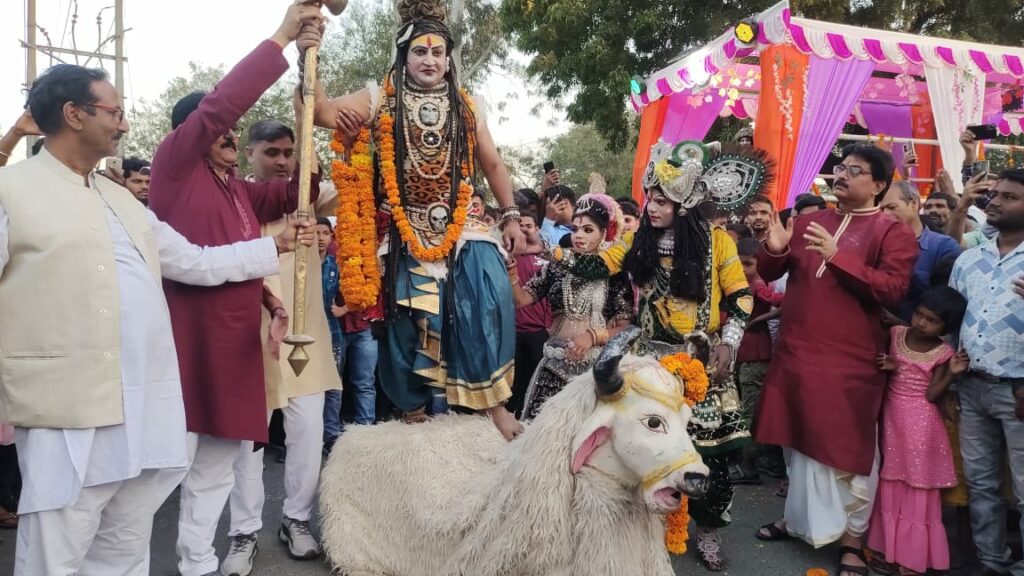 बीजपुर (विनोद गुप्त) महाशिवरात्रि पर्व पर शुक्रवार की सायं एनटीपीसी रिहंद आवासीय परिसर स्थित शिव मंदिर समिति द्वारा विशाल शिव बारात निकाली गयी। बारात में शामिल कलाकार भूत प्रेत के रुप में आकर्षण का केंद्र रहे । कलाकारों द्वारा प्रस्तुत शिव तांडव लोगों के आकर्षण का केंद्र रहा। शिव बारात एनटीपीसी आवासीय परिसर स्थित शिव मंदिर से शुरू होकर एनटीपीसी कालोनी, स्वागत गेट,बीजपुर बाजार से होते हुए दुधहिया मन्दिर तक जाकर समाप्त हुई । इस दौरान ग्रामीणों ने जमकर ठुमके लगाए बोल बम व हर हर महादेव के नारो से समूचा इलाका शिव मय हो उठा।