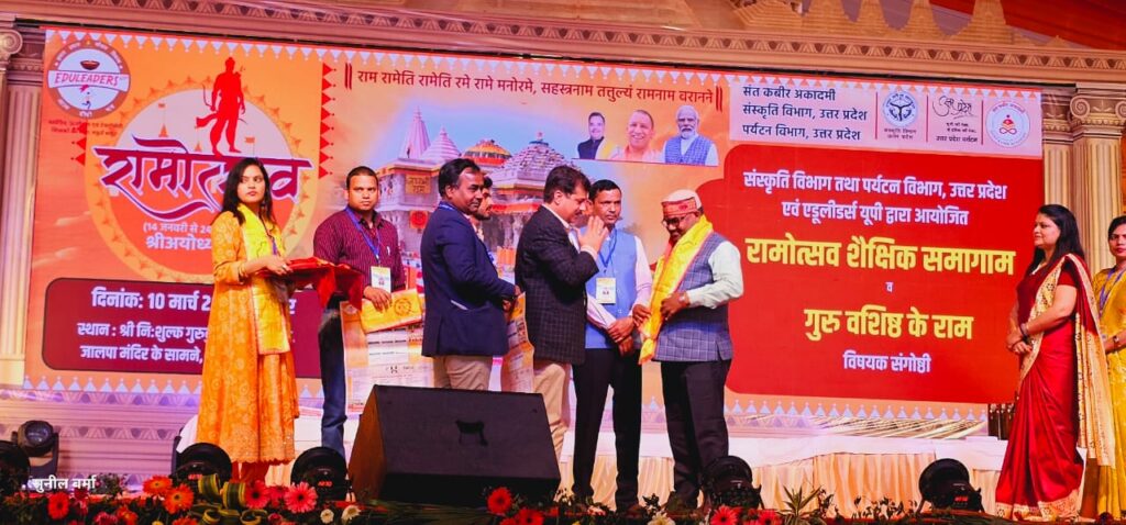 संस्कृति विभाग व पर्यटन विभाग उत्तर प्रदेश शासन व संत कबीर अकादमी द्वारा भगवान राम के भब्य नब्य मंदिर में प्रतिष्ठित होने के बाद अयोध्या में रामोत्सव 2024 साहित्य संस्कृति मंच कार्यक्रम दिनांक 14जनवरी से लगातार चल रहा है जिसमें कला संस्कृति, गणित से जुडे लोगों को मंच प्रदान कर अन्त्योदय की भावन को बल प्रदान किया जा रहा है।उसी के क्रम में संस्कृति विभाग उत्तर प्रदेश शासन ने शिक्षकों के स्वतः स्फूर्त टेक्नोसेवी समूह एडूलीडर्स के जनपद एडमिन्स को बुलाकर गुरु वशिष्ठ के राम संगोष्ठी में प्रदेश के सभी पचहत्तर जनपदों के शिक्षकों को सम्मानित किया।