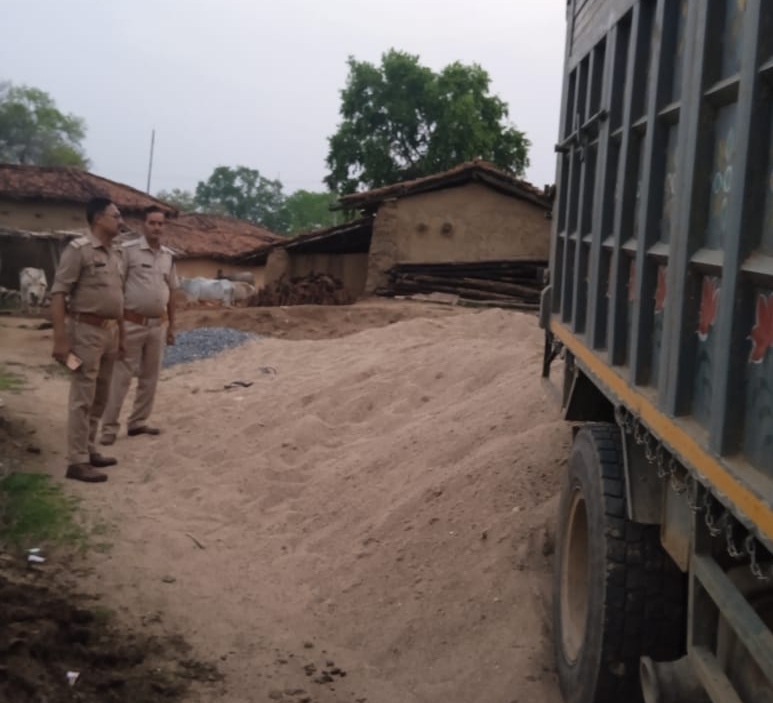 – ड्योढ़ी में एक घर के समीप डंप बालू का कर रहा था लोडिंग