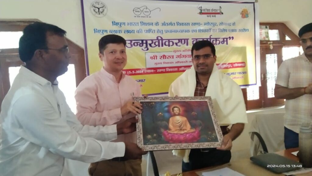 कार्यक्रम का शुभारंभ मुख्य अतिथि मुख्य विकास अधिकारी जिला बेसिक शिक्षा अधिकारी एवं डीसी मनरेगा द्वारा दीप प्रज्वलन कर मां सरस्वती की पूजा अर्चना से किया गया तत्पश्चात खंड शिक्षा अधिकारियों द्वारा मुख्य अतिथि एवं विशिष्ट अतिथि का बुके एवं स्मृति चिन्ह देकर सम्मान किया गया। कक्षा 1, 2 एवं 3 के बच्चों को निपुण बनाने हेतु प्रत्येक कक्षा में निपुण लक्ष्य का निर्धारण किया गया है जिसे पूरा करने हेतु उन्हें वर्तमान में ए,बी सी की श्रेणी में बांटा गया है। मुख्य विकास अधिकारी द्वारा ग्रेड बी और सी के लगभग 200 प्रधानाध्यापकों की उपस्थिति में समीक्षा की गई एवं निपुण बनाने आने वाली चुनौतियों को चिन्हित किया गया एवं उनका सहज समाधान भी प्रस्तुत किया गया। जिला मुख्य विकास अधिकारी द्वारा सभी अध्यापकों को व्यवहार कुशल बनने नेतृत्वकर्ता के रूप में कार्य करने अभिभावकों एवं समाज से जुड़ने अपने नजरिया को सकारात्मक रखने तथा सदैव अग्रिम योजनाओं के प्रति तैयार रहते हुए विद्यालय को निपुण बनाने का सुझाव दिया गया। इस क्रम में बी और सी ग्रेड के विद्यालयों को निपुण बनाने की अंतिम सीमा 31 जुलाई 2024 तक रखी गई जिसका प्रत्येक 15 दिन पर मुख्य विकास अधिकारी द्वारा समीक्षा भी किया जाएगा। मुख्य विकास अधिकारी द्वारा ग्रीष्म शिविर चलाने के लिए एक कार्य योजना भी साझा की गई तथा जो शिक्षक स्वेक्षा से इसमें प्रतिभाग करना चाहते हैं उनको आमंत्रित भी किया गया।