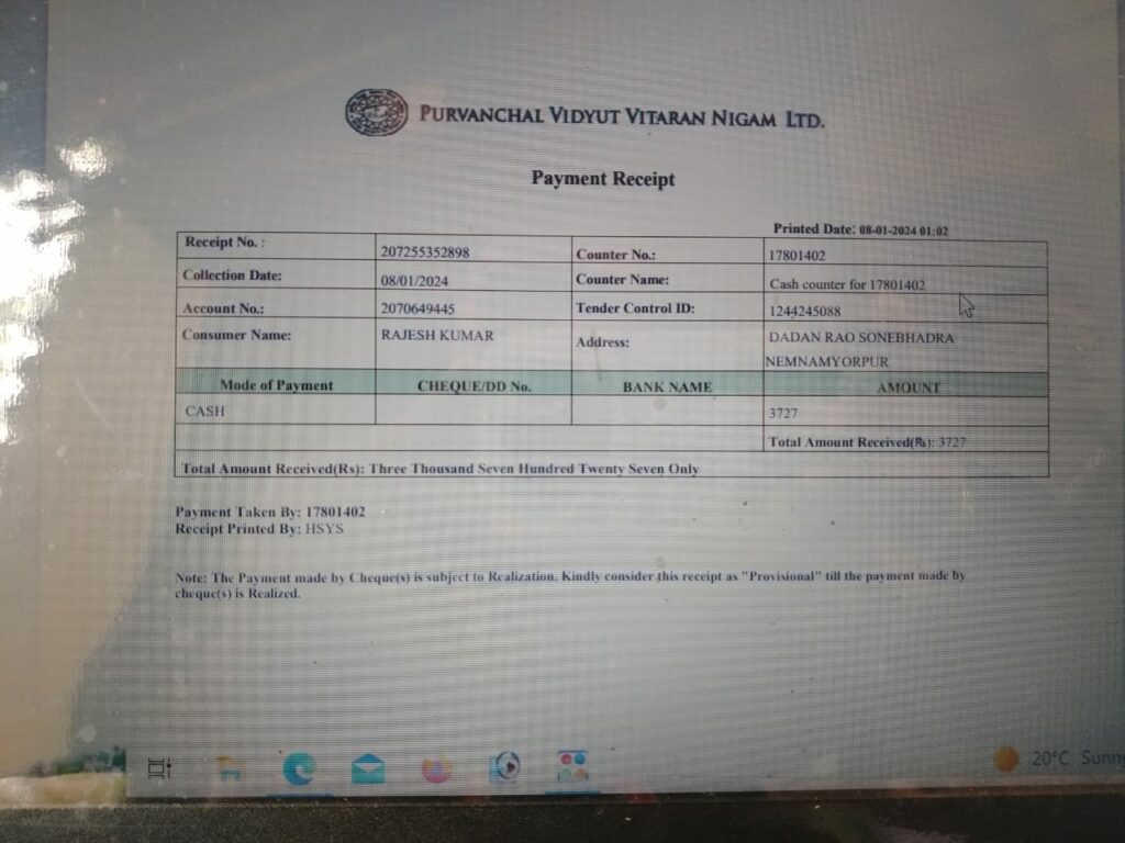 बीजपुर- सोनभद्र (विनोद गुप्त) यूपीपीसीएल म्योरपुर उपखंड कार्यालय में ओटीएस योजना सम्बन्धित बिजली विल में छूट की आस में सैकड़ों उपभोक्ताओं की फाइल माह अक्टूबर नवम्बर से अब तक धूल चाट रही है उपभोक्ता अभी भी छूट की उम्मीद में एसडीओ कार्यालय का चक्कर काटने को मजबूर हैं।बताया जाता है कि गाँवों में जेई सहित बिजली कर्मियों ने अभियान चला कर सरकार के ऑफर योजना का प्रचार प्रसार कर बकाया बिजली बिल में(ओटीएस) एकमुश्त समाधान योजना के तहत उपभोक्ताओं को छूट का प्रलोभन दिया गया और बकाया बिल के अनुसार रजिस्ट्रेशन फीस तक जमा कराया गया तमाम लोगों ने तो बकाए राशि की पूरी धनराशि जमा रसीद तक लेली है लेकिन आज तक सैकड़ों ग्रामीणों के ऊपर बिजली बिल बकाया जश के तश पड़ा है।इसबाबत राजेश दुवे, सन्तोष विश्वकर्मा,हरिशंकर,मनोज कुमार, दयाशंकर,राजेन्द्र,विकास,फूलमती,अवधेश,राजकुमार,शम्भूनाथ सहित अनेक ग्रामीणों का आरोप है कि आयोजित कैम्प के समय बकाया बिल का समझौता के बाद पैसा जमा कर रसीद लिया गया लेकिन विभागीय पोर्टल एकाउंट में अभी भी बकाया पड़ा है।उपभोक्ता कहते हैं कि इस सम्बन्ध में जेई से शिकायत की गई तो उन्हों ने कहा एसडीओ साहब के पास सब की फाइल पड़ी है स्वीकृति होते ही बकाया जीरो हो जाएगा।ग्रामीण कई बार एसडीओ कार्यालय गए भी लेकिन लोगों को बताया गया कि साहब नही है। विभागीय अधिकारी वास्तव में ग्रामीणों को परेशान कर रहे है या फिर कोई समस्या है कि जानकारी के लिए एसडीओ म्योरपुर राहुल सुंदरम को फोन कर जानकारी लेने का प्रयास किया गया लेकिन उनका फोन रिसीव नही हुआ।