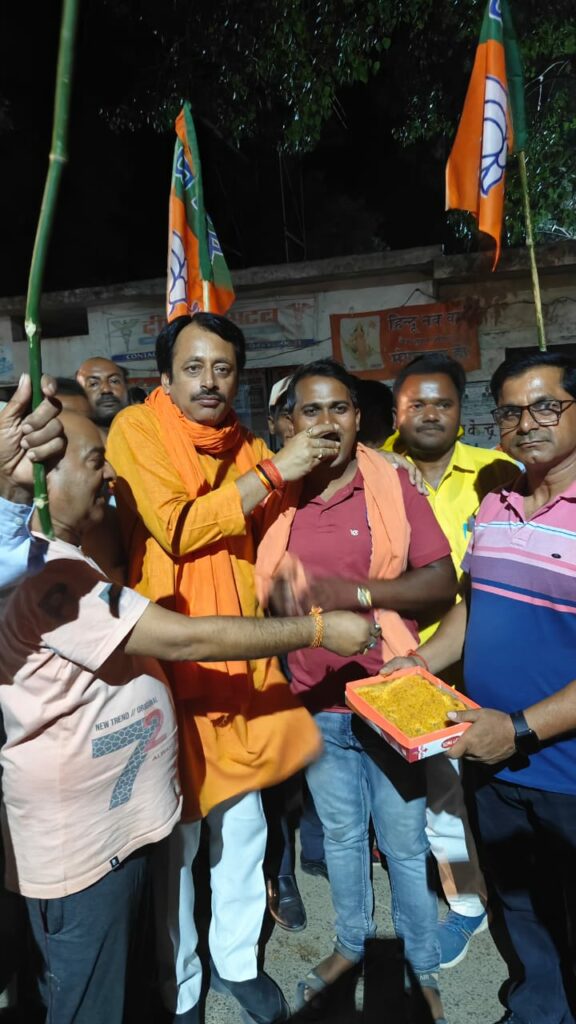 कार्यकर्ताओं ने बड़ी तादात में मिठाइयां भी बाटी लोगों को
