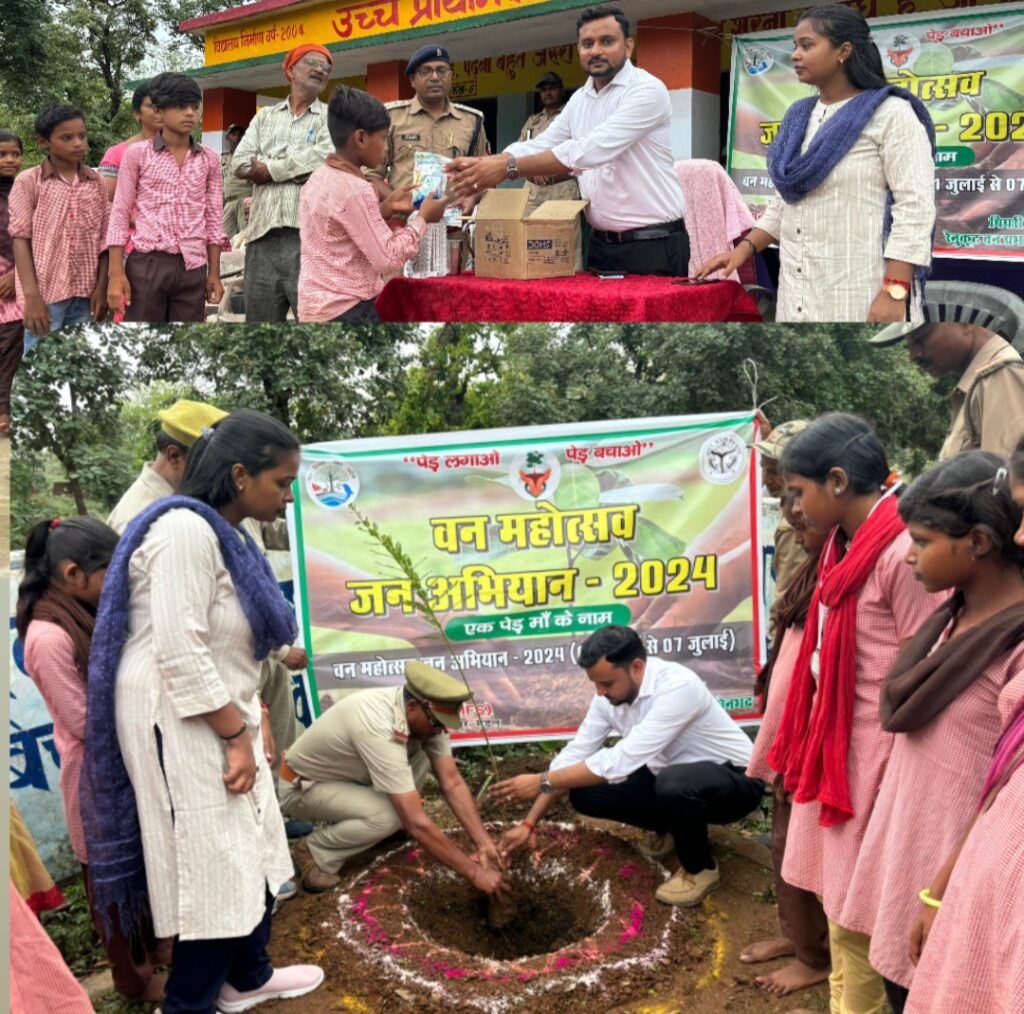 (रेणुकूट सोनभद्र रामकुमार गुप्ता) पीपरी वन रेंज क्षेत्र के ग्राम पंचायत सिंदूर मकारा के प्राथमिक विद्यालय में वन महोत्सव का आयोजन प्रभागीय बनाअधिकारी डा भानेंद्र सिंह व उपप्रभागीय वनाधिकारी पिपरी श्रीमती उषा एवं पिपरी रेंजर राघवेंद्र कुमार एवं रेंज के समस्त स्टाफ की गरिमामय उपस्थिति में वन महोत्सव उच्च प्राथमिक विद्यालय मकरा एवम प्राथमिक विद्यालय मकरा के अध्यापक गण ,ग्राम प्रधान एवं बच्चो के साथ मनाया गया एवं बच्चो और ग्रामीणों को पेड़ पौधों के हमारे जीवन में महत्व एवं उनके रख रखाव के बारे में बताया गया एवं इस वर्षाकाल मेअधिक से अधिक पौध रोपण के लिए प्रेरित कियाऔर उसे बड़ा होने तक देख भाल की जिमेवारी दिया गया, एवं विद्यालय परिसर में पौध रोपण किया गया , सभी लोग कम से कम पांच पौधे हलदर और इमारती के लगाएऔर उसकी देखभाल करें पौधों को कैसे जीवित रखना है आप औरों के लिए प्रेरणा स्रोत बन सकते हैं आज पर्यावरण पर संकट है जिसका हल हम सब के साथ में है मौके पर छात्रों के साथ वन विभाग ने पौधा रोपण किया इस प्रतियोगिता का आयोजन किया गया एवं बच्चो में पुरुस्कार एवं मिस्ठान वितरण किया गया।इस कार्य क्रम का सूचना अजीत गुप्ता ने दी।