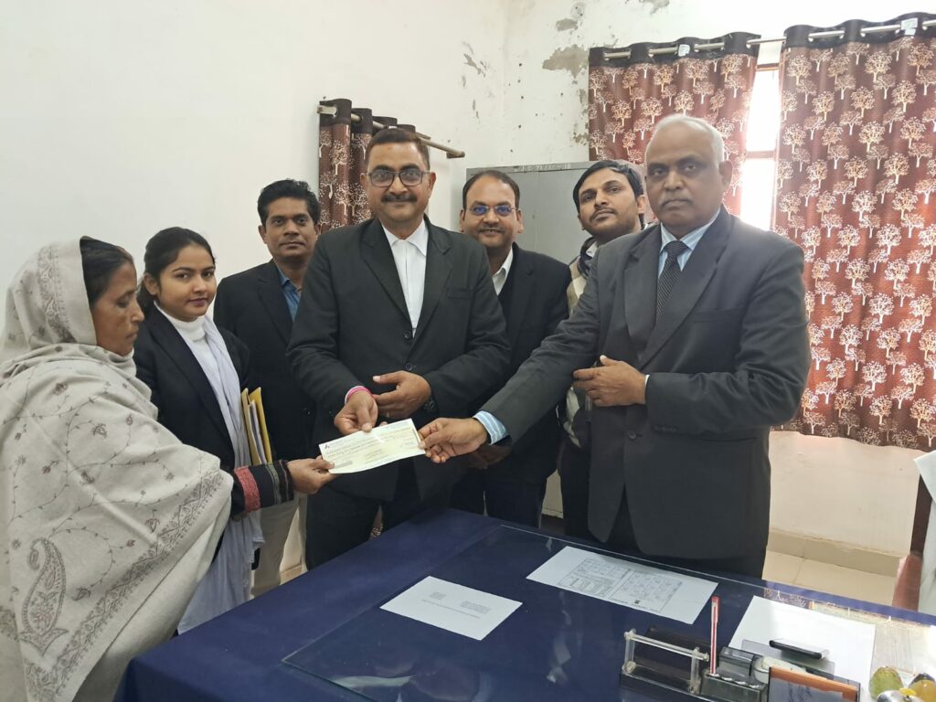 जिसमें भारतीय जीवन बीमा निगम की तरफ से सुलह समझौता के आधार पर मामले का निस्तारण करते हुए वादी रेहाना परवीन को स्थाई लोक अदालत अध्यक्ष नरेंद्र बहादुर प्रसाद द्वारा 35427 रूपये का चेक दिया गया।