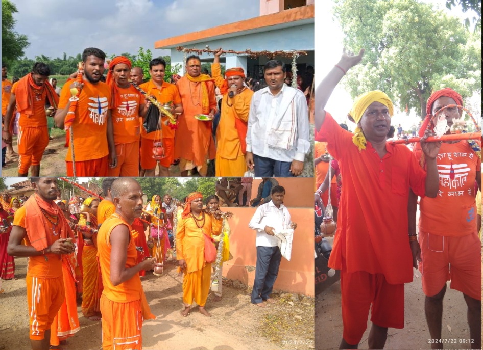 विंढमगंज/सोनभद्र(संतोष मिश्रा) थाना क्षेत्र के फुलवार गांव के जोरमा टोला सहित महुली ,जोरूखाड,पोलवा,पतरिहा आदि गांवों के पुरूष महिलाएं एवम बच्चे फुलवार के मालिया नदी से जल भर कर बोल बम के नारे लगाते हुए गलेश्वर धाम पहुंचे।हर वर्ष की भांति इस वर्ष भी डा.राम प्यारे गुप्ता जी के नेतृत्व में हजारों की संख्या में लोग जुलूस में शामिल हुए।जुलूस का संचालन ग्राम प्रधान श्री दिनेश यादव जी ने किया। डीजे के भक्ति गानों पर लोग नाचते गाते झूमते हुए पथरीली रास्ते से होते हुए भोले नाथ के मंदिर गलेश्वर धाम पहुंच कर शिव लिंग पर जल अर्पित किया।मंदिर के पुजारी श्री अनुज मिश्रा ने बताया कि जो भक्त मन में जो भी कामना लेकर यहा आता है उसकी सारी मनोकामना पूरी होती है। इस मौके पर ग्राम प्रधान श्री दिनेश यादव ,सुधीर श्रीवास्तव,राधे श्याम यादव,मुरली गुप्ता,मुकेश गुप्ता,बबलू चौधरी आदि गणमान्य उपस्थित थे।