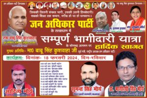जन अधिकार पार्टी सत्ता के साथ करेगी ब्यवस्था परिवर्तन- बाबू सिंह कुशवाहा February 18, 2024 Read More »